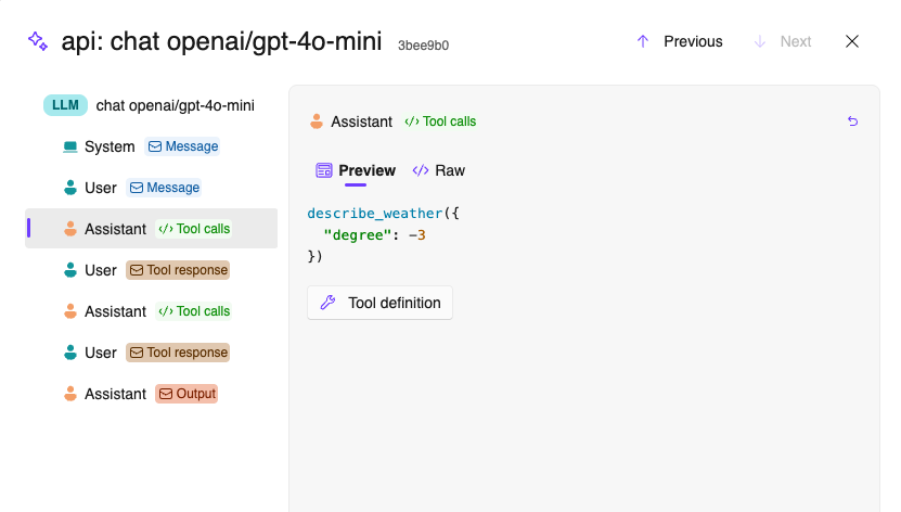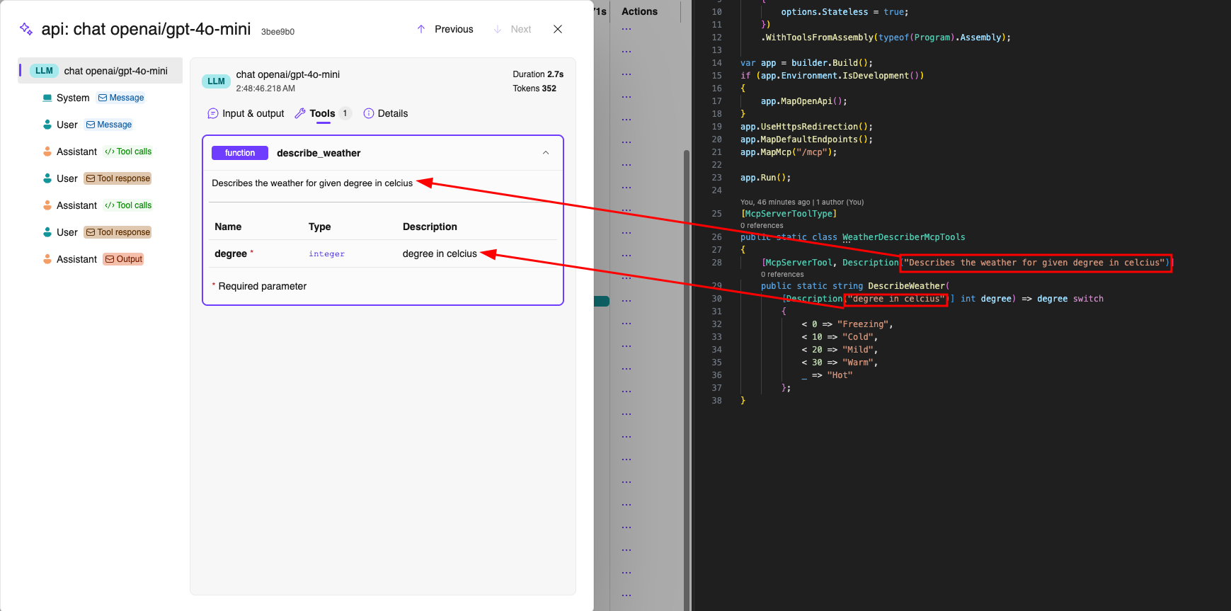 We can see the tool definition that was used as below, at Tools section of the trace: