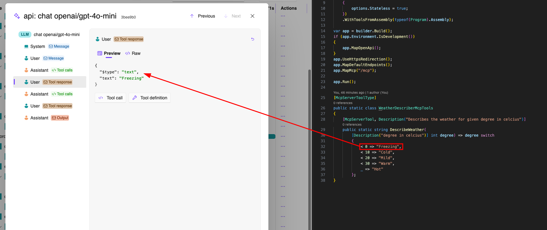 [McpServerTool, Description("Describes the weather for given degree in celcius")]